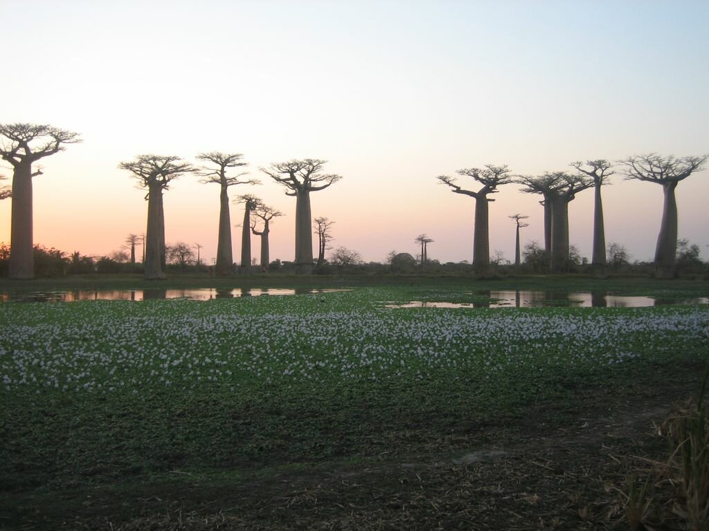 On dénombre à Madagascar 6 des 8 espèces de baobabs de la planète. Existen en Madagascar 6 de 8 especies de árboles de baobab en el mundo.