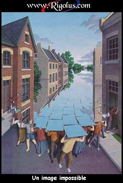 Les oeuvres les plus brillantes issues de ces métiers sont une source d'inspiration utile pour étudier le processus de créativité . The most brilliant works from these trades are a useful source of inspiration to explore the creative process. C'est pourquoi je vous propose aujourd'hui une série d'images trouvées sur le net qui m'ont particulièrement frappées. That is why I am proposing today a series of images found on the net that particularly struck me. Vous verrez qu'elles font largement appel au trompe l'oeil , à l' humour et aux paradoxes pour arriver à leur fin. You'll see they make extensive use of trompe l'oeil, with the humor and paradoxes to achieve their end.